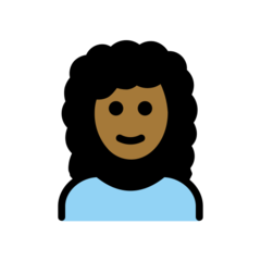 | Emoji | 👩🏾🦱 |